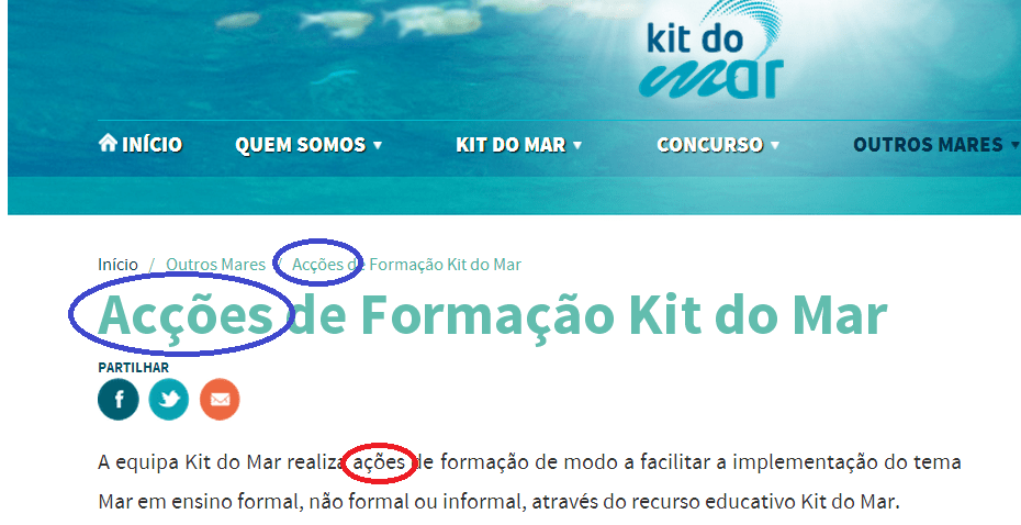 Peguemos num caso prático – por exemplo, nas acções de formação do Kit do Mar –, para testarmos o estado actual de aplicação do Acordo Ortográfico de 1990.
