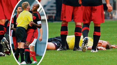 Em pleno estádio, Luisão apaixonou-se. O árbitro ficou literalmente siderado.